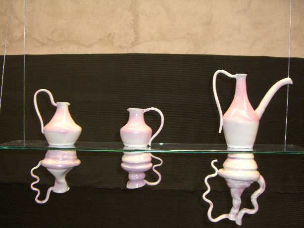Caty se forme au centre sur une année. Son travail associe la peinture et son regard de peintre sur une installation en reflets de pièces tournées mises en couleur.