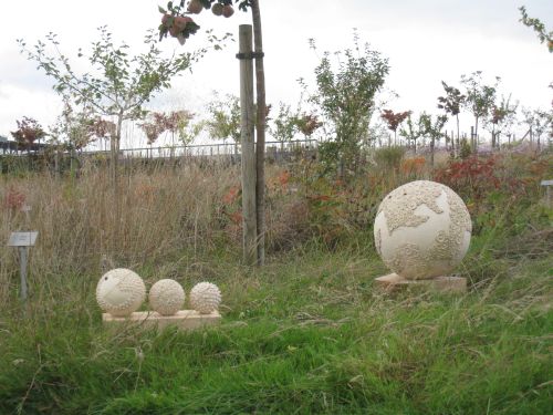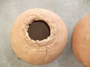 Elle sculpte la terre autour de formes sphériques principalement.